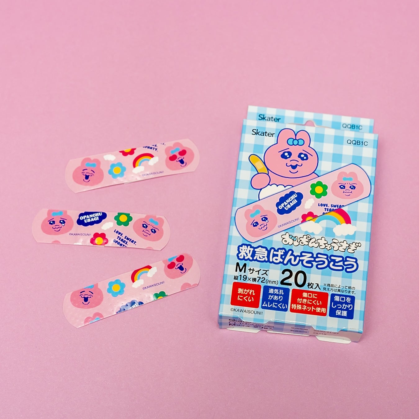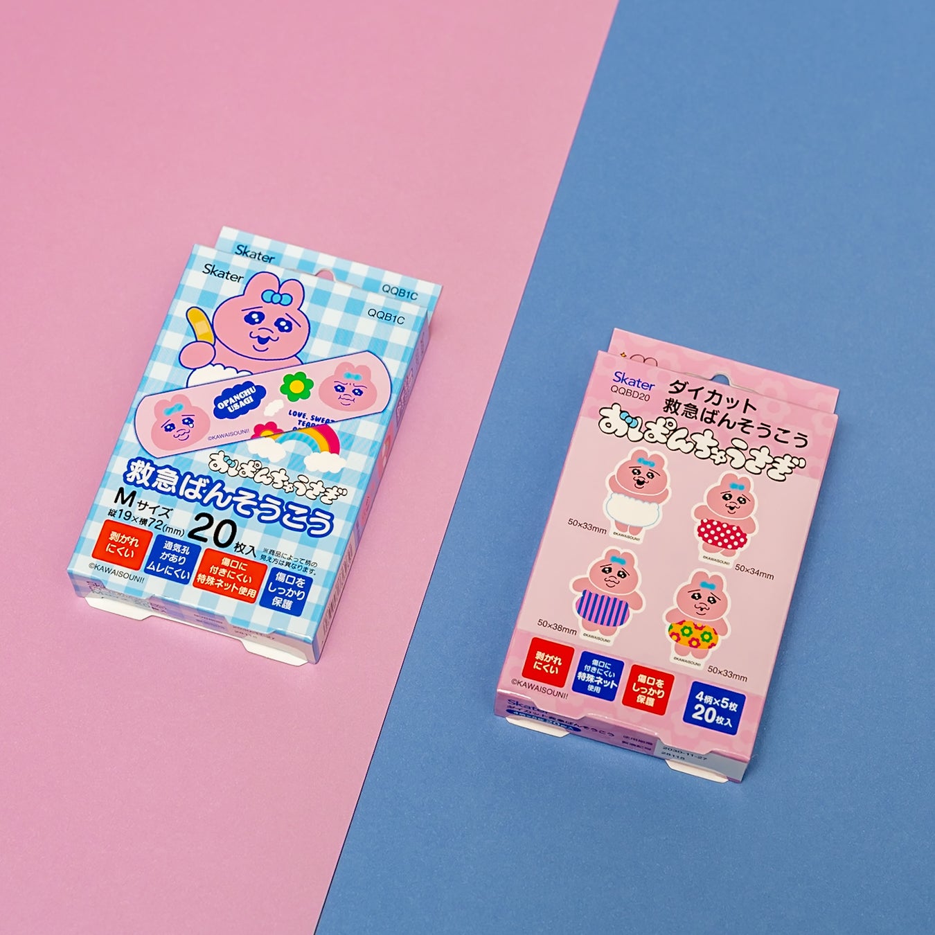 【おぱんちゅうさぎ】傷口を可愛くガード!スケーター ダイカット型とスタンダードなMサイズの絆創膏2種