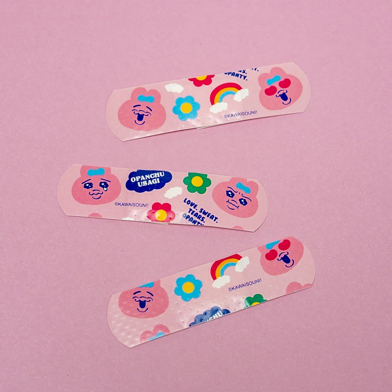 本製品は、キャラクターの形をしたユニークなダイカットタイプと、 日常使いしやすいスタンダードなMサイズの2種類を展開します。 怪我をした際の不安な気持ちを、 「おぱんちゅうさぎ」の健気で愛らしい表情が和らげてくれるアイテムです。