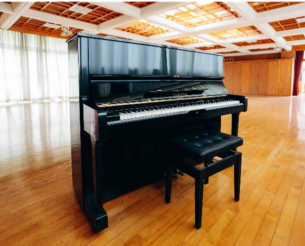 【設置ピアノ】今回、「駅ピアノ」として設置するピアノは、“子どもたちに本物のピアノの音色を”という想いで、1979年(昭和54年)にオルガンに代わって市内の上荘幼稚園にやってきたものです。2004年(平成16年)からは市内の両荘幼稚園(令和3年度末で閉園)に場を移し、子どもたちの歌やお遊戯ための音楽を奏で、歴史を見届けてきたピアノです。