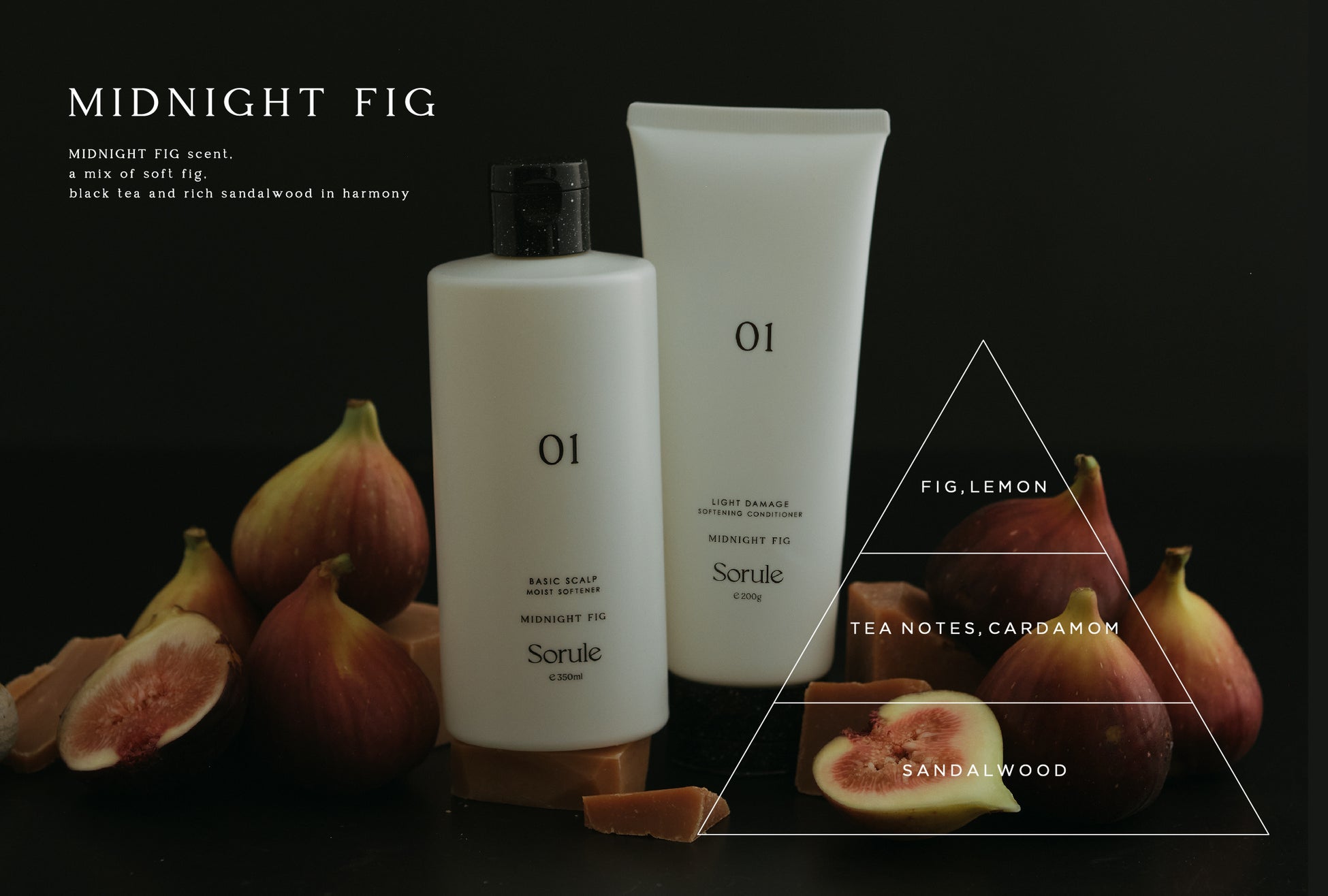 ヘアケアライン共通の香り“MIDNIGHT FIG”は「洗練」「自立」「自愛」をイメージして調香。やわらかなフィグと紅茶に濃厚なサンダルウッドが調和したジェンダーレスな奥深い香りです。