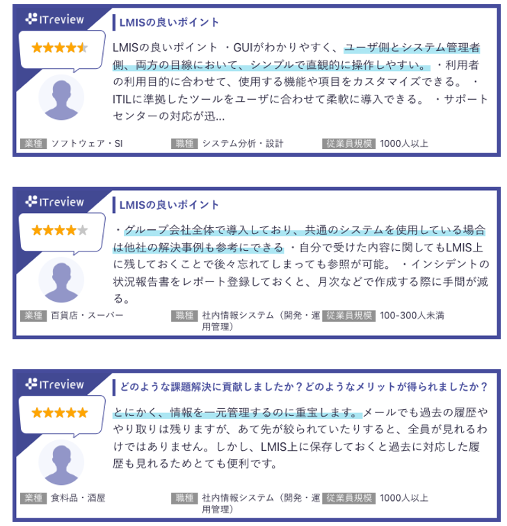 コメントの詳細はこちら:https://www.itreview.jp/products/lmis/reviews
