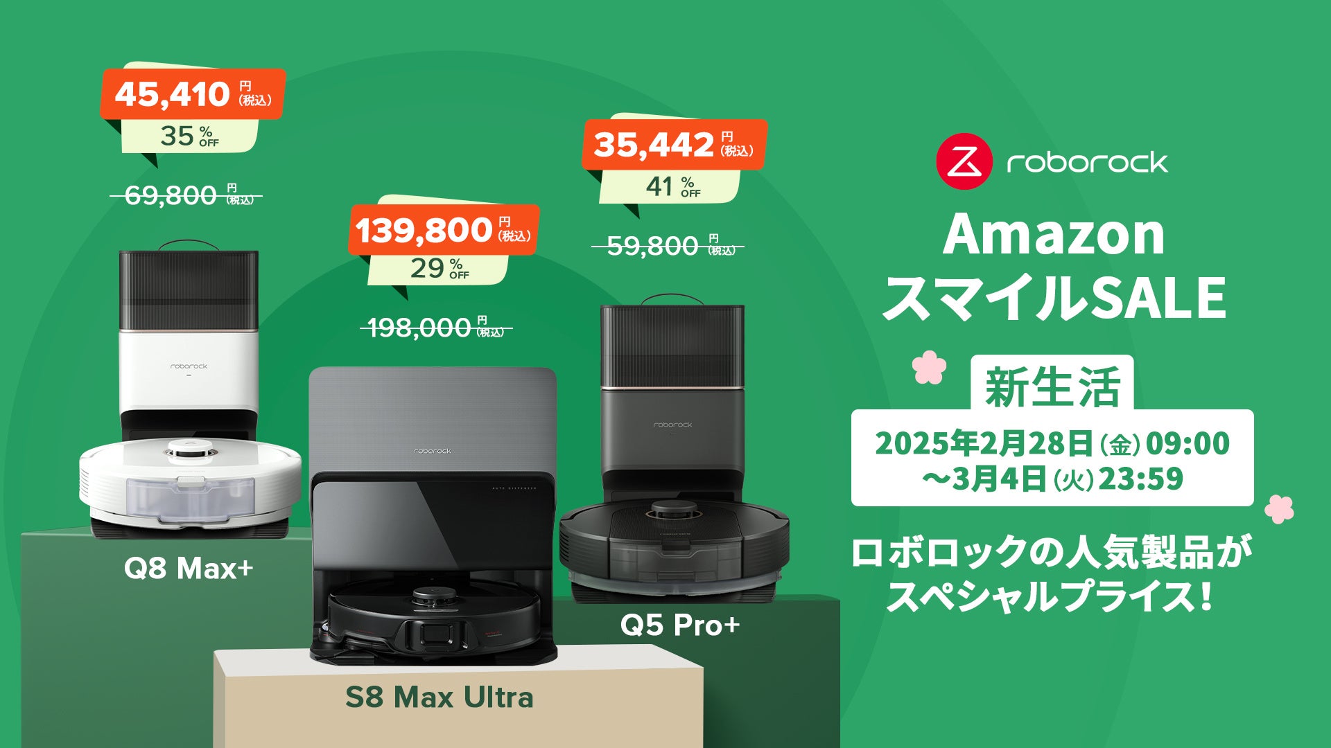 社:中国北京、CEO:Richard Chang)は、2025年2月28日(金)09:00から3月4日(火)23:59まで、Amazonが開催する「スマイルSALE 新生活」に参加し、Roborockのプレミアムモデル「S8 Max Ultra」を含む人気製品を特別プライスでご提供します。