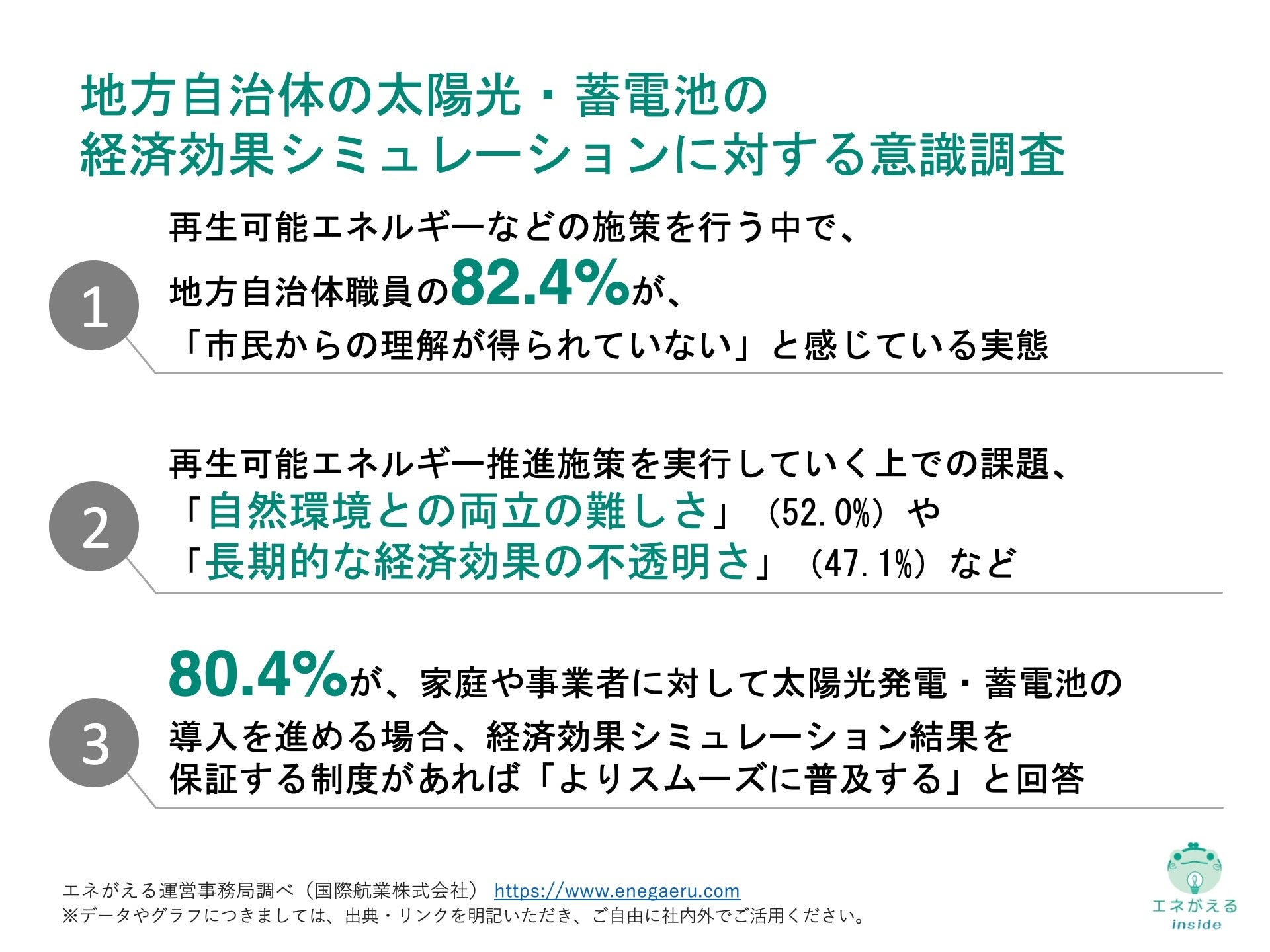 [独自レポートVol.22]【自治体に調査】82.4%が、再生可能エネルギーの施策を行う中で「市民からの理解が得られていない」と実感 「経済的負担」や「経済効果の不透明さ」に課題の声