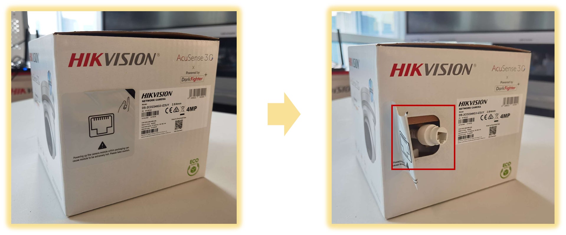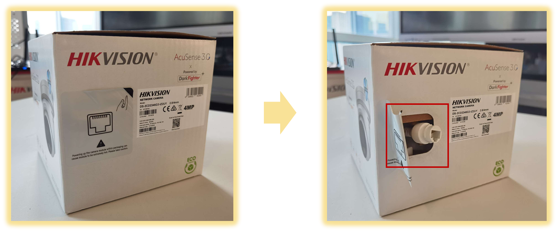 簡簡単キッティング梱包:外箱を破壊せずにカメラのアップグレードや設定が可能な新設計を採用。