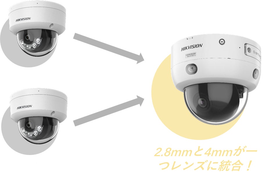Hikvision独自のポイントバリフォーカルレンズを採用し、2.8mmと4mmの画角を1つのレンズでカバーします。