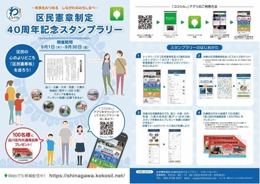 品川区は区民憲章制定40周年を記念して9月1日~9月30日、品川区情報アプリ「ココシル品川」を活用した非接触スタンプラリーイベント「区民憲章制定40周年記念スタンプラリー」を開催します。