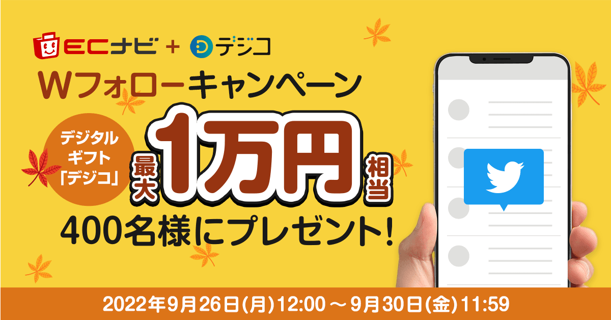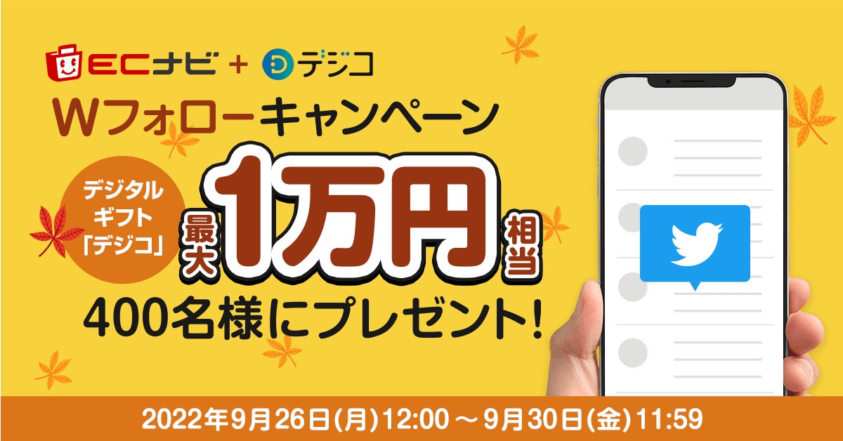 デジタルギフト「デジコ」、ポイントサイト「ECナビ」と共同で最大1万円相当が400名様に当たるTwitterキャンペーンを開始