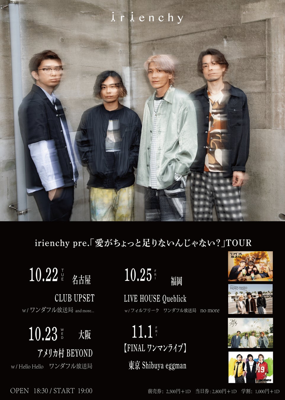 irienchy presents 「愛がちょっと足りないんじゃない?」TOUR福岡 LIVE HOUSE Queblick