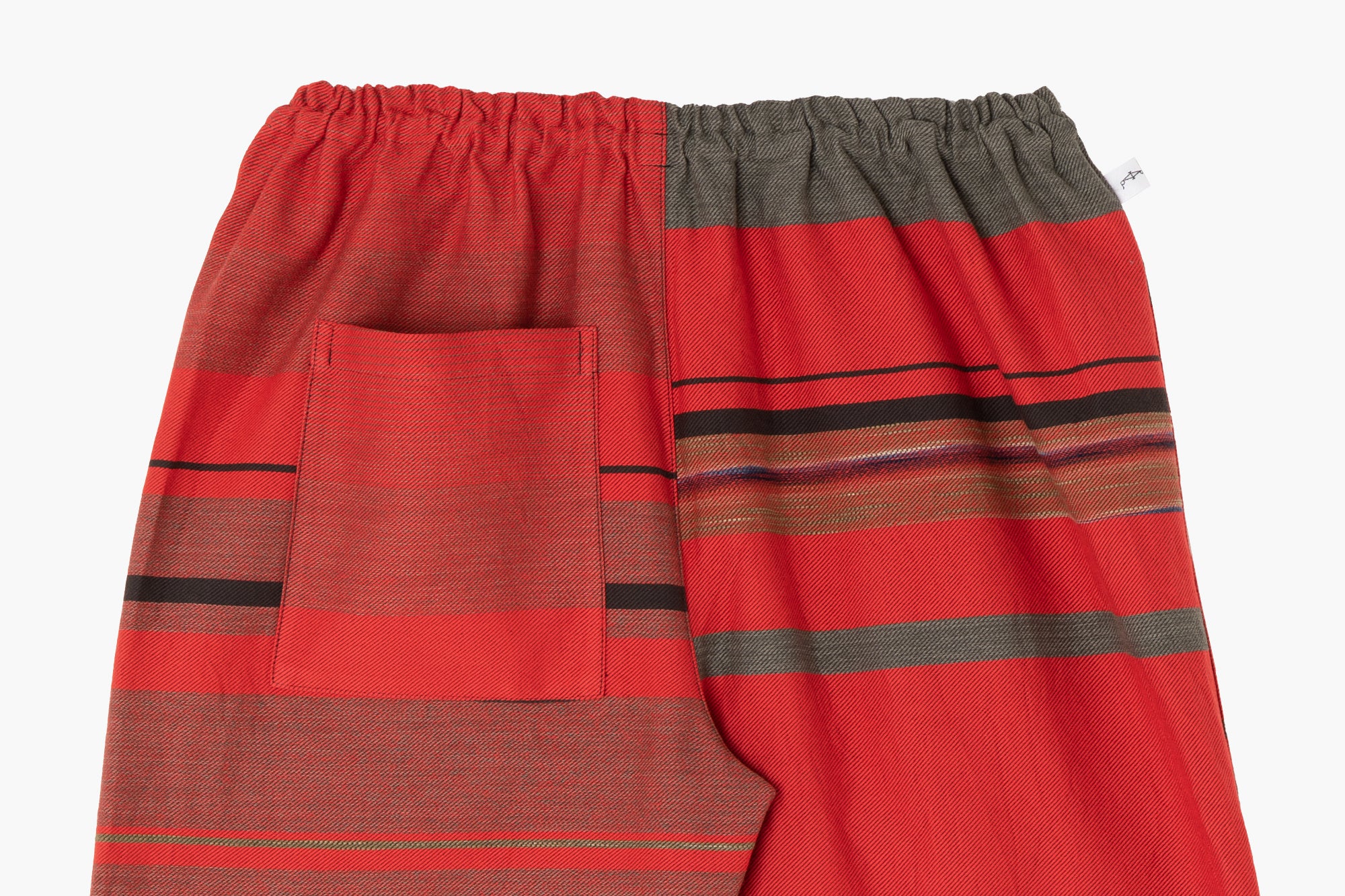 tamaki niimeコラボMONPEは、単純にtamaki niimeの生地を使用するだけではなく、世界に一つだけの作品とするべく、双方で話し合いを重ね、裁断する方向も1点1点変えています。よく見ると左右も前後の柄も同じではなく、出会うすべてが唯一無二のコラボMONPEです。