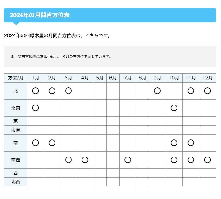 1. 2024年方位盤(年共通の吉方位・凶方位)