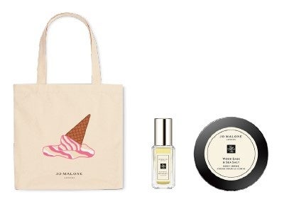 アイスモチーフのキャンバストートバッグ、人気の香りのコロンとボディ クレームのミニサイズをプレゼント