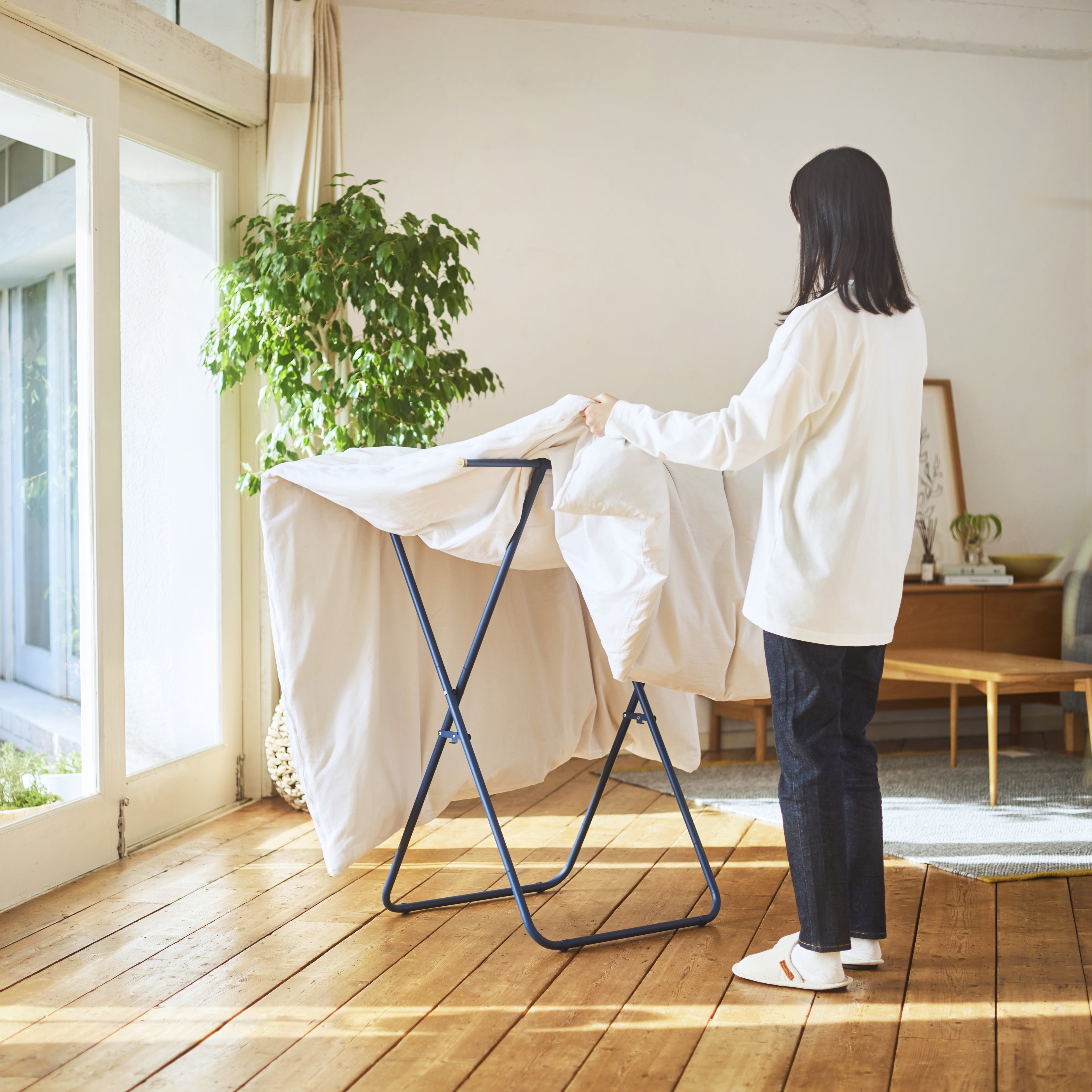 サイドから楽にふとんが干せます。衣類などの物干しスタンドとしても使えます。