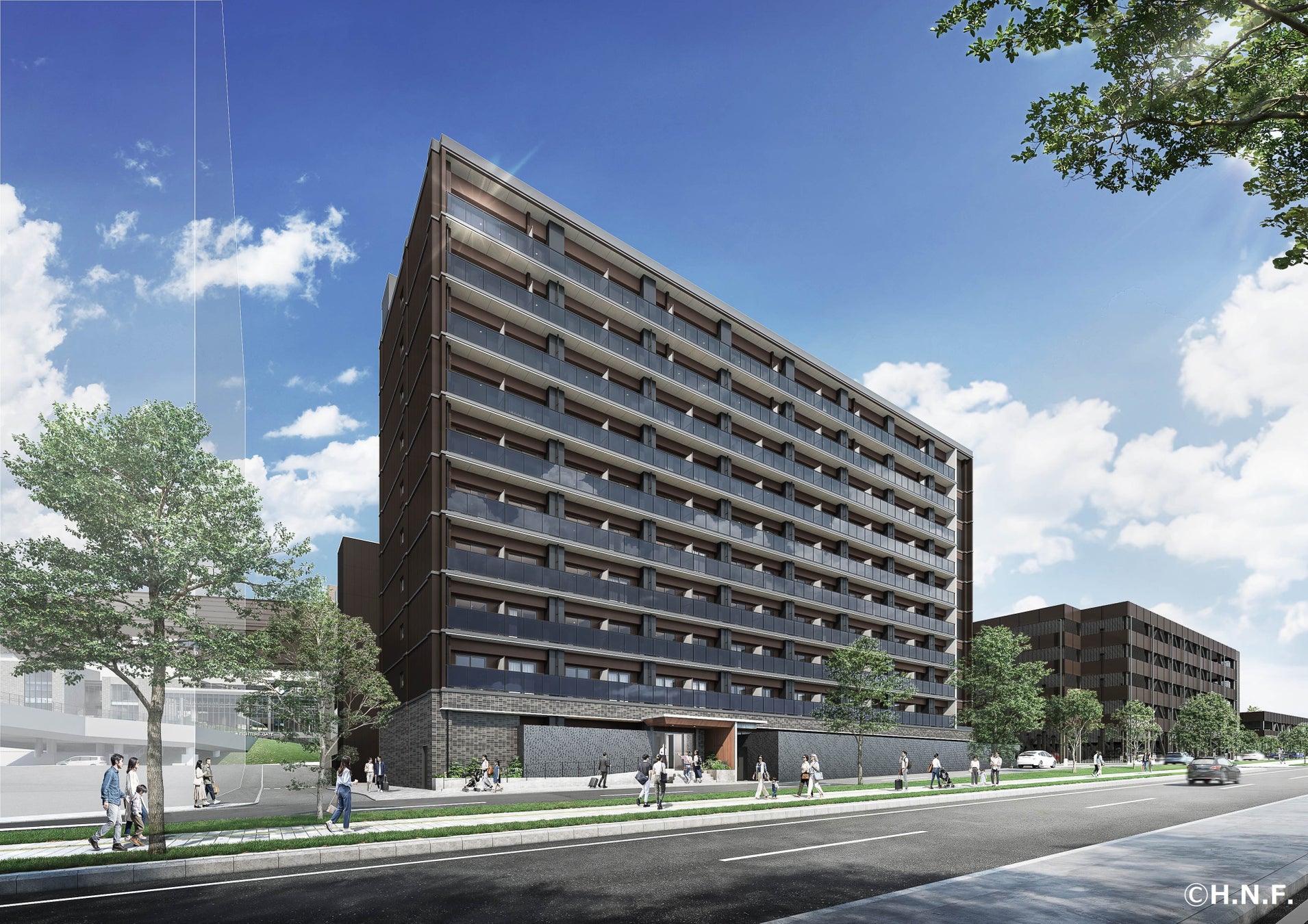 ※2.掲載の完成予想図は計画段階の図面を基に描き起こしたもので、形状・色等は実際とは異なり施工上の都合あるいは行政指導により今後変更となる場合がございます。