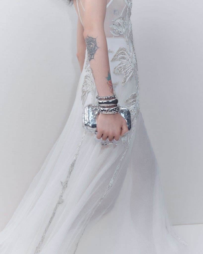 「スカル フォーリング クラッチ」は、アレキサンダー・マックイーンのアイコンであるスカルやスワロフスキーをあしらったフォーリングのハンドルが特徴的なクラッチバッグです。