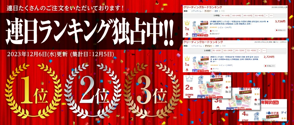 【楽天デイリーランキング独占中】まだ間に合う!「最速年賀状」は13時までの注文で当日出荷。受付は12月26日まで!