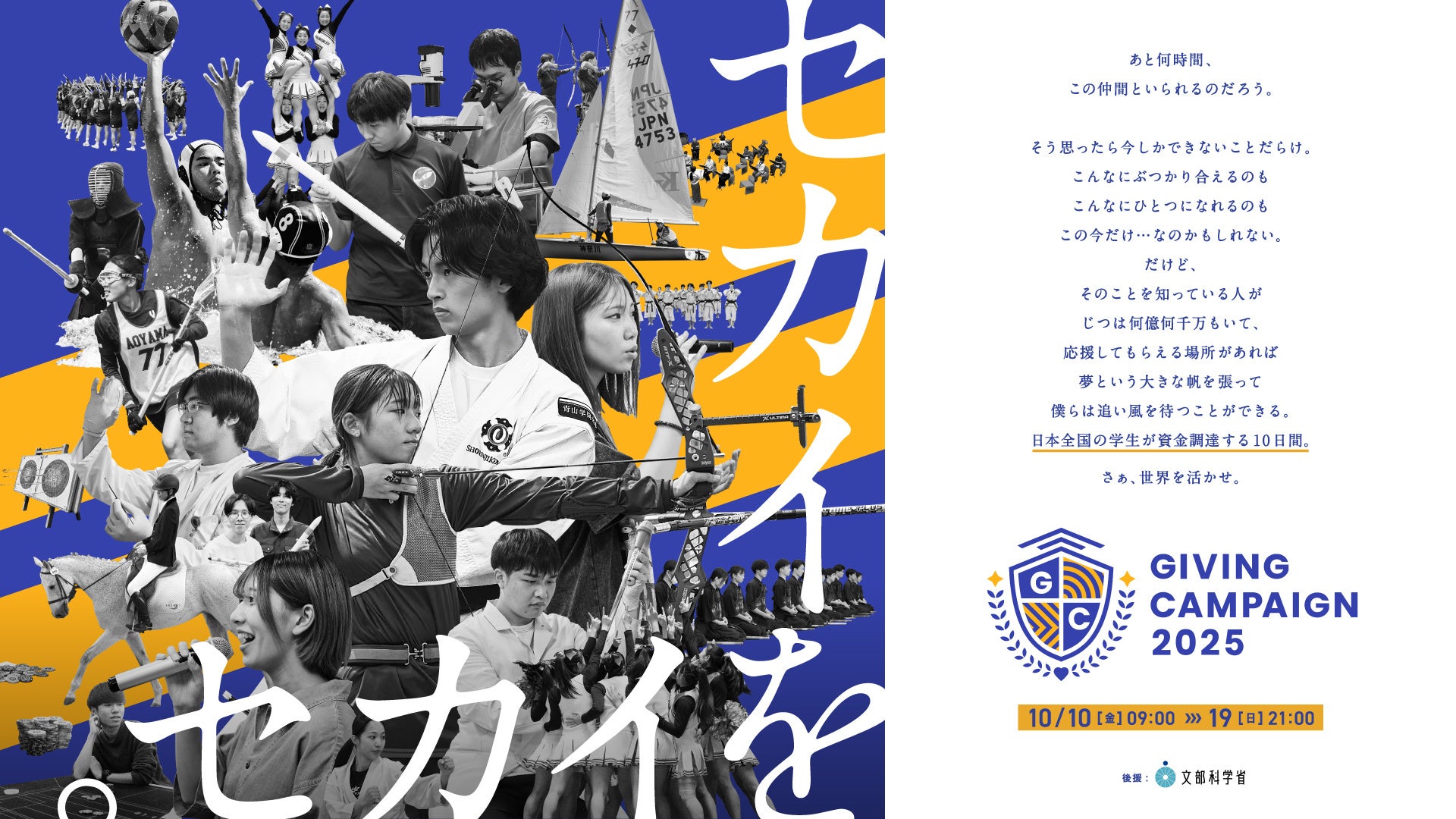 Giving Campaignは、全国の大学・高専の団体(部活・サークル・研究室等)がSNS等で活動を発信し、支援を募るオンラインイベントです。2025年10月の開催では、約2,800団体が参加し、10日間で約80万人からの応援と1.6億円の寄付を創出しました。本キャンペーンは、学生の資金不足を解消する直接的支援にとどまらず、若者が主体的にファンドレイジング(資金調達)に取り組むことで、日本の寄付文化の裾野を広げるという重要な社会的意義も担っています。