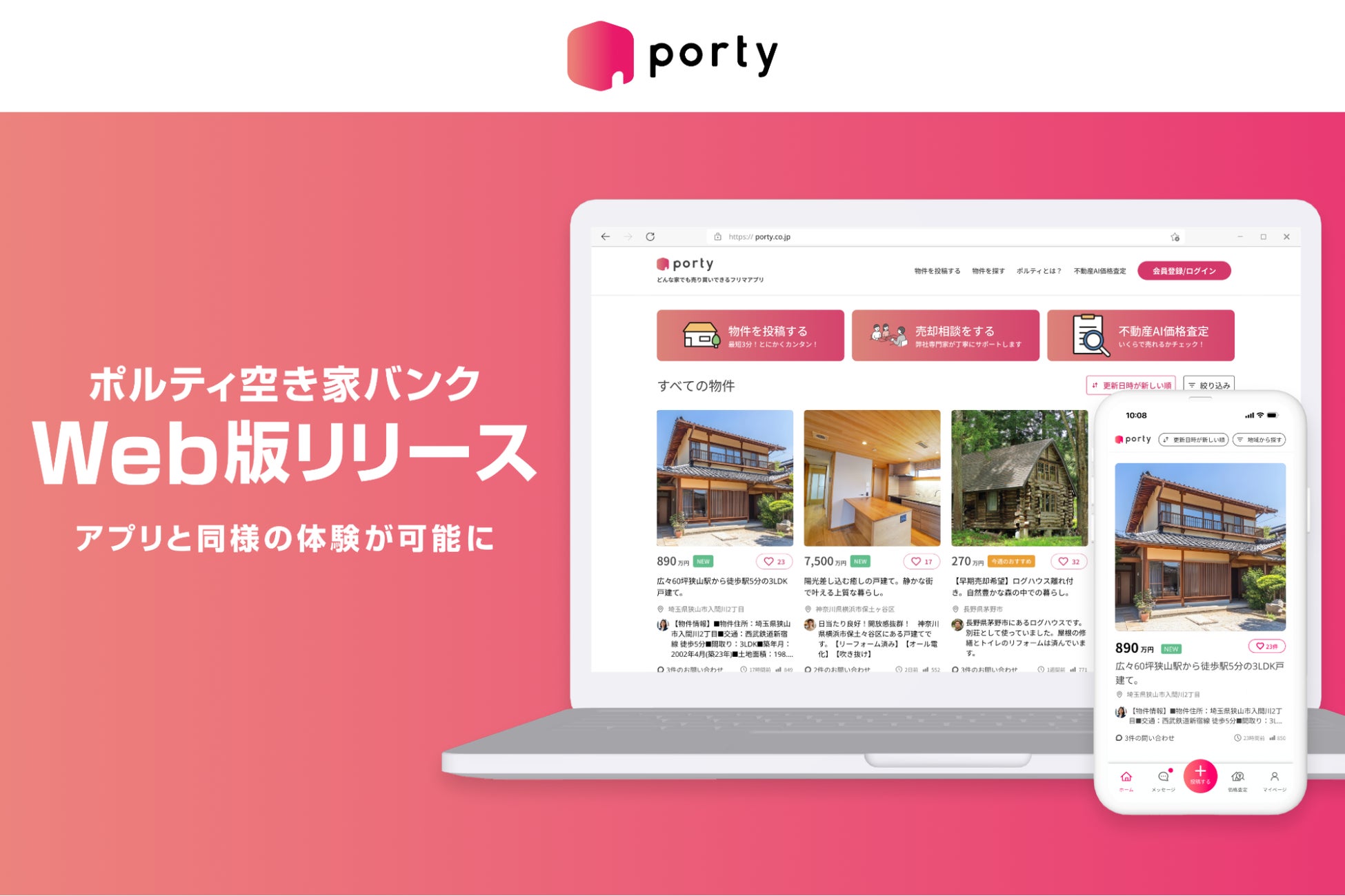 「ポルティ空き家バンク」では、これまで個人間のマッチングを中心にサービス展開してきました。加えて今後は、プロの不動産投資家に向けた流通チャネルの開拓も強化してまいります。その一環として、PCから物件を一覧・比較・問い合わせしやすいWeb版(https://porty.co.jp/)も正式リリースいたしました。