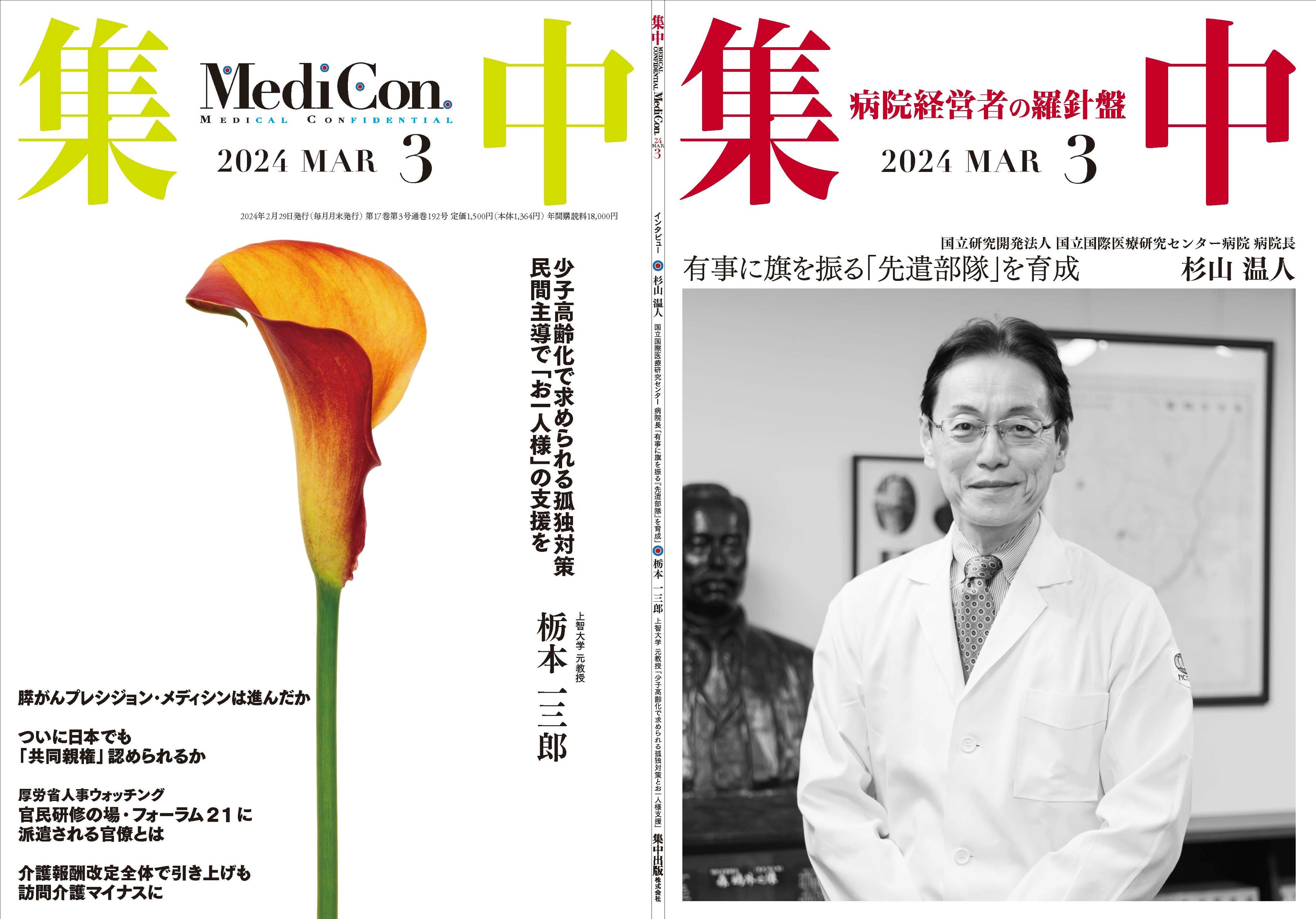 2008年創刊の医療情報誌・月刊『集中』(B5/毎月1日・50,000部発行)は、病院経営者や医師の為の情報誌として、厚生行政、医薬品、医療機器企業の動向等、病院の経営に役立つ医療情報を提供しています。また弊社は、日本の医療が抱える諸問題について毎月テーマを挙げ、国会議員団・医療機関経営者・医療関連企業の幹部の皆様が集い、情報交換をする定例勉強会「日本の医療の未来を考える会」を主催しています(医療従事者は参加費無料/2023年1月現在登録者約2,000名)。来る2024年3月27日開催の第76回勉強会では、厚生労働省医政局医事課 医師等医療従事者働き方改革推進室長の佐々木康輔氏を講師にお迎えし、「医師の働き方改革」の進捗、準備状況、取り組むべきポイントについて伺います。当会メンバー様以外の医療従事者の方のご参加も受け付けます。ぜひ足をお運び下さい。