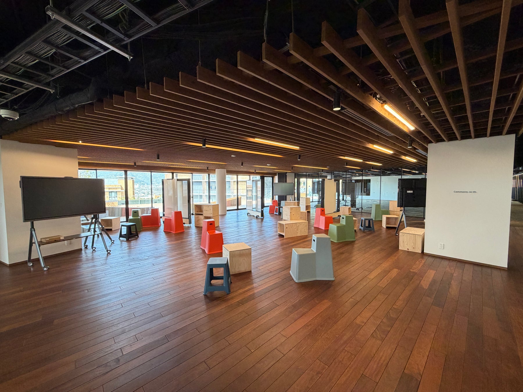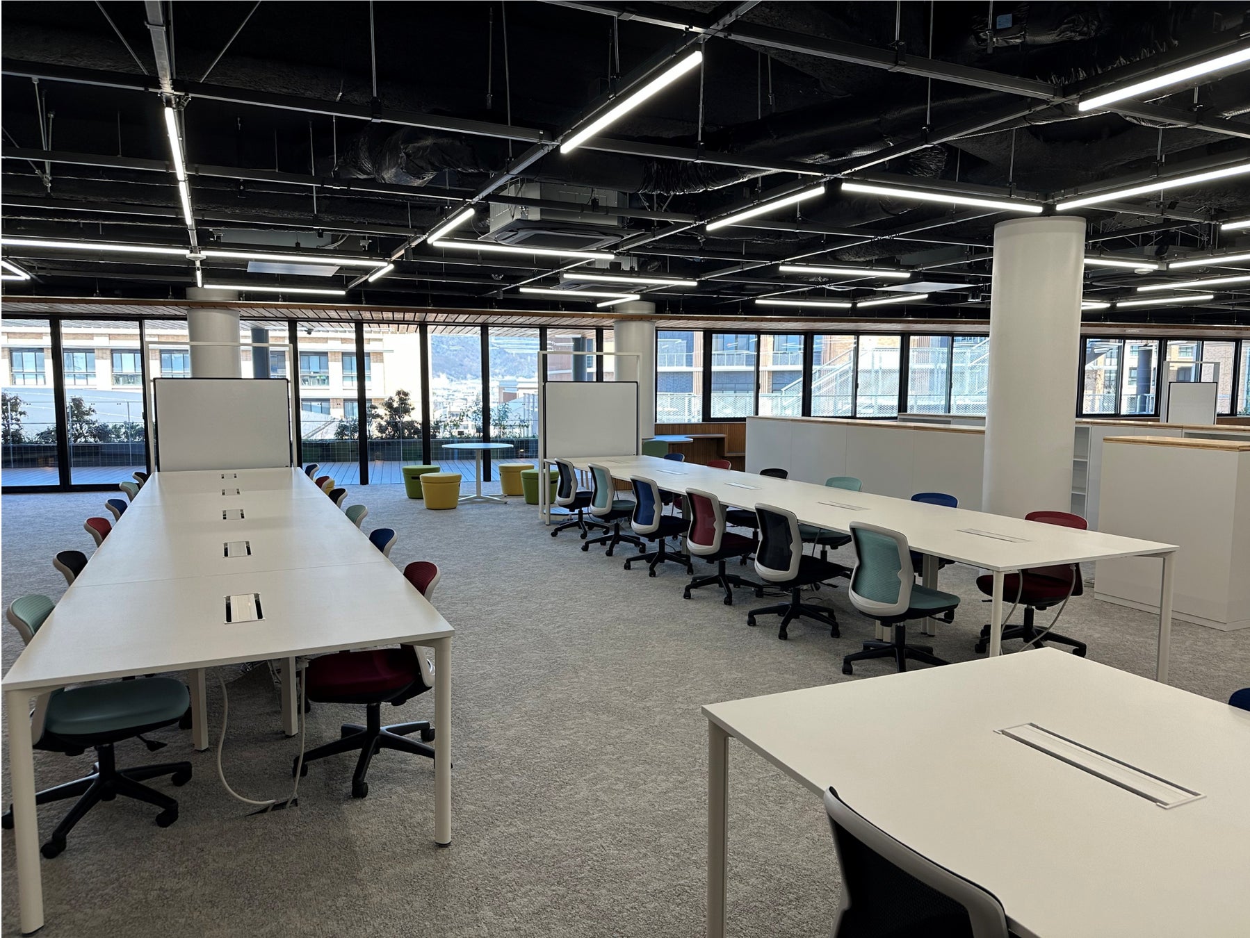 8階のスカイテラスからは、東山や比叡山を一望できます。Commons∞thと連続し一体での利用ができることも大きな魅力です。日常とは少し違う、開放感あふれる景色を楽しめる場所です。
