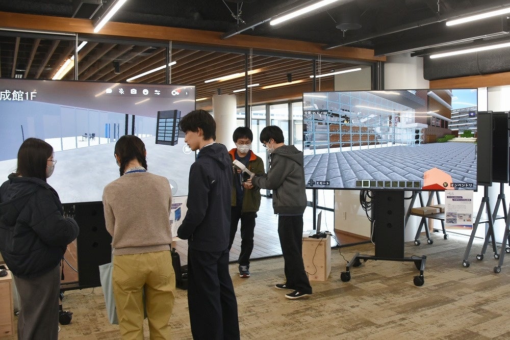 Media Lab3は、学生が自身の制作する映像やゲームはもちろん、最新のXR技術(VR/AR)やインタラクティブコンテンツを発表・展示等に活用する空間です。ゲームグラフィックや映像表現の魅力を余すことなく伝えるため、大型モニターを設置。スケール感のある作品展示に最適な環境を構築しています。