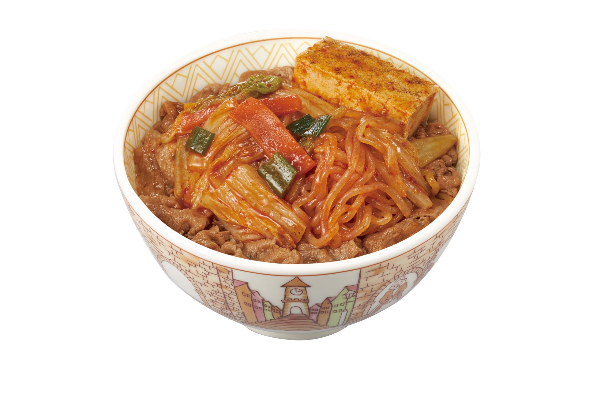 「すきやき牛丼」は、贅沢な“すき焼き”を丼でお気軽にお楽しみいただける商品です。すき家特製のすき焼きのタレがしっかりしみ込んだたっぷりの野菜(白菜、人参、青ねぎ)と、しらたき、大ぶりな焼き豆腐を牛丼にトッピングすることで、すき家ならではの”すき焼き“の味わいをご堪能いただけます。