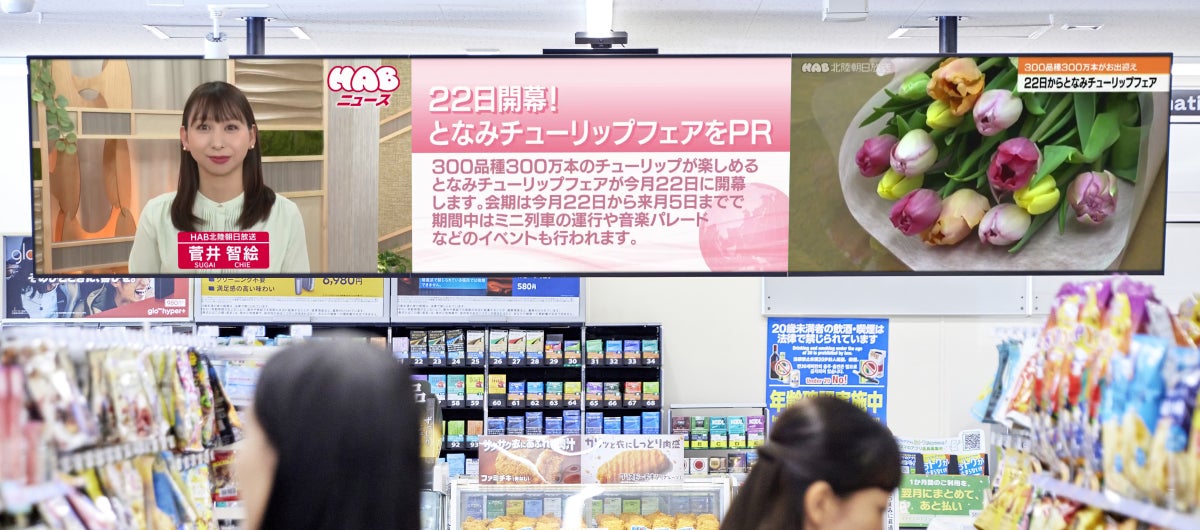 今回の配信では、北陸朝日放送のアナウンサーが出演する地域情報コンテンツを来店客へ届けるとともに、AIカメラ計測やアンケート調査を通じて、「視認率」「視聴時間」「購買行動」への影響を多角的に検証してまいります。