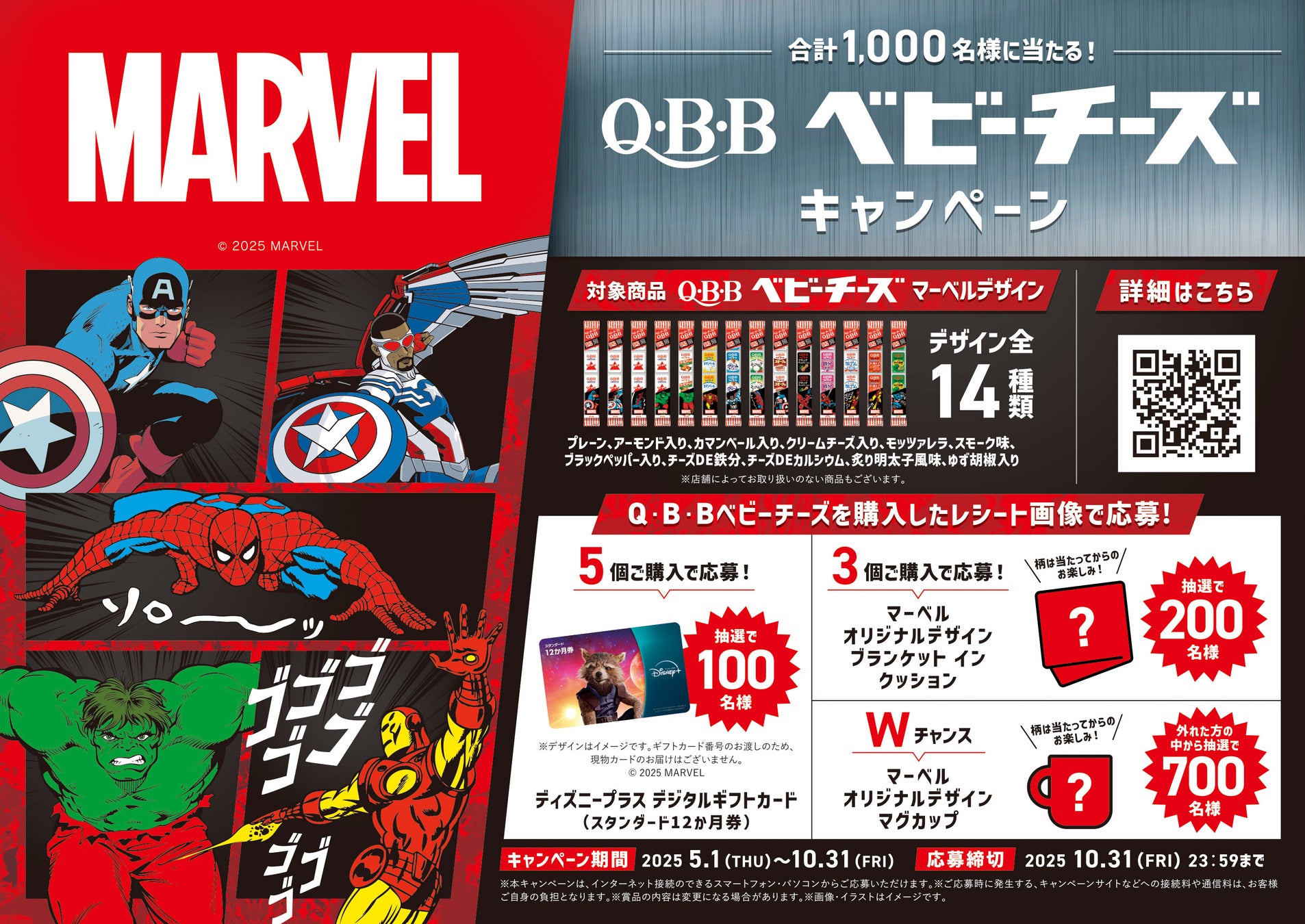 QBB公式Xにて、抽選でマーベルデザインベビーチーズ詰め合わせの当たるSNSキャンペーンを実施します。
