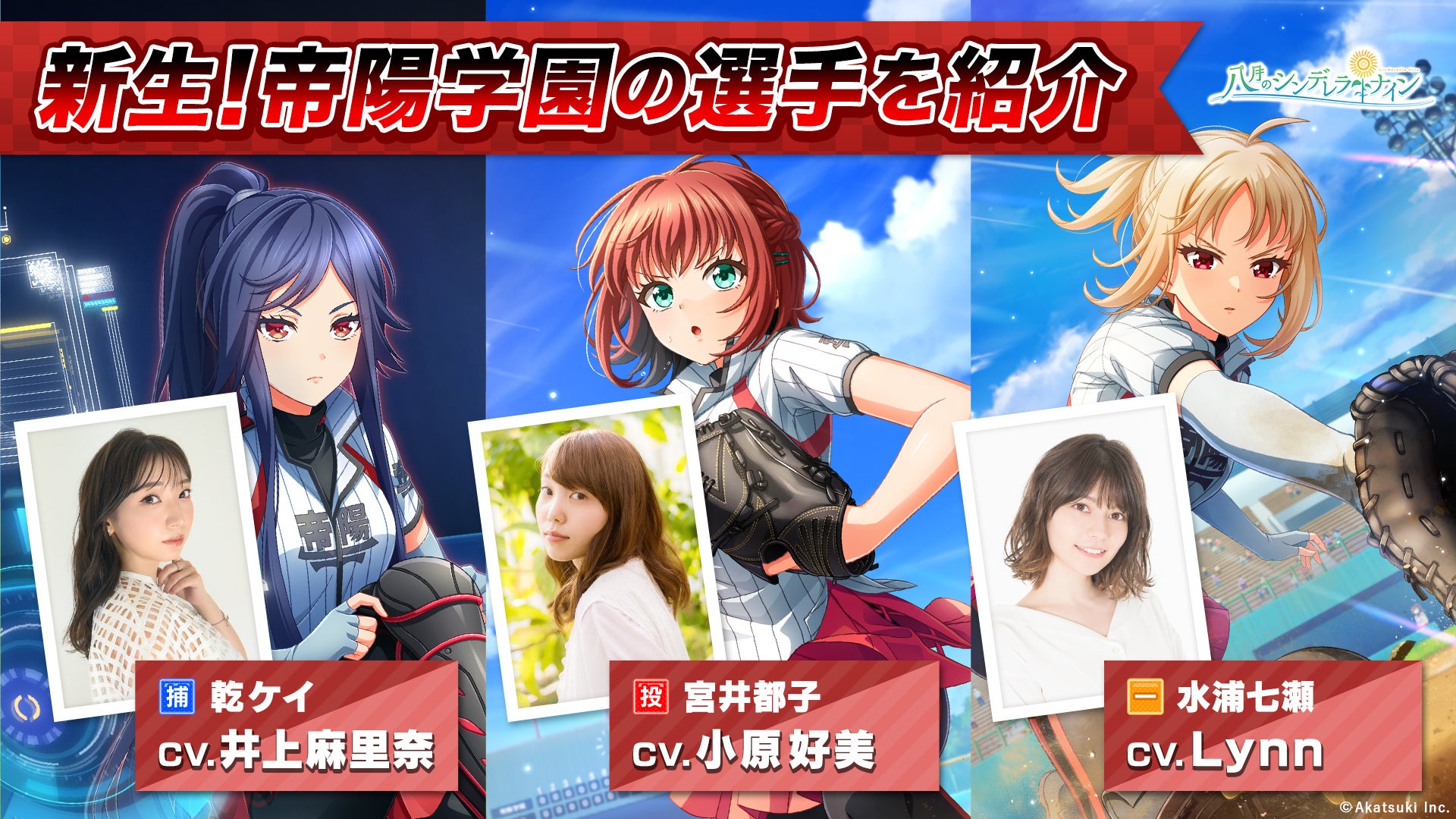 『八月のシンデレラナイン』、声優のLynnさんが演じる帝陽学園の「水浦七瀬」がガチャに初登場!新生 帝陽学園の選手紹介!
