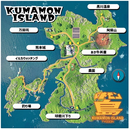 「くまモン島」は、ゲーム業界では“タイクーン”と呼ばれる経営シミュレーションゲームです。舞台となる「くまモン島」には、熊本中の魅力から自然発生したくまモンたちが仲良く暮らしている設定で、くまモンたちは、熊本の魅力を全世界に伝えるため、最先端技術の結晶である巨大くまモンロボをつくる極秘計画に着手するが、計画を進めていく過程で様々な問題が発生し、急遽プレイヤーに協力を求めるというストーリーです。