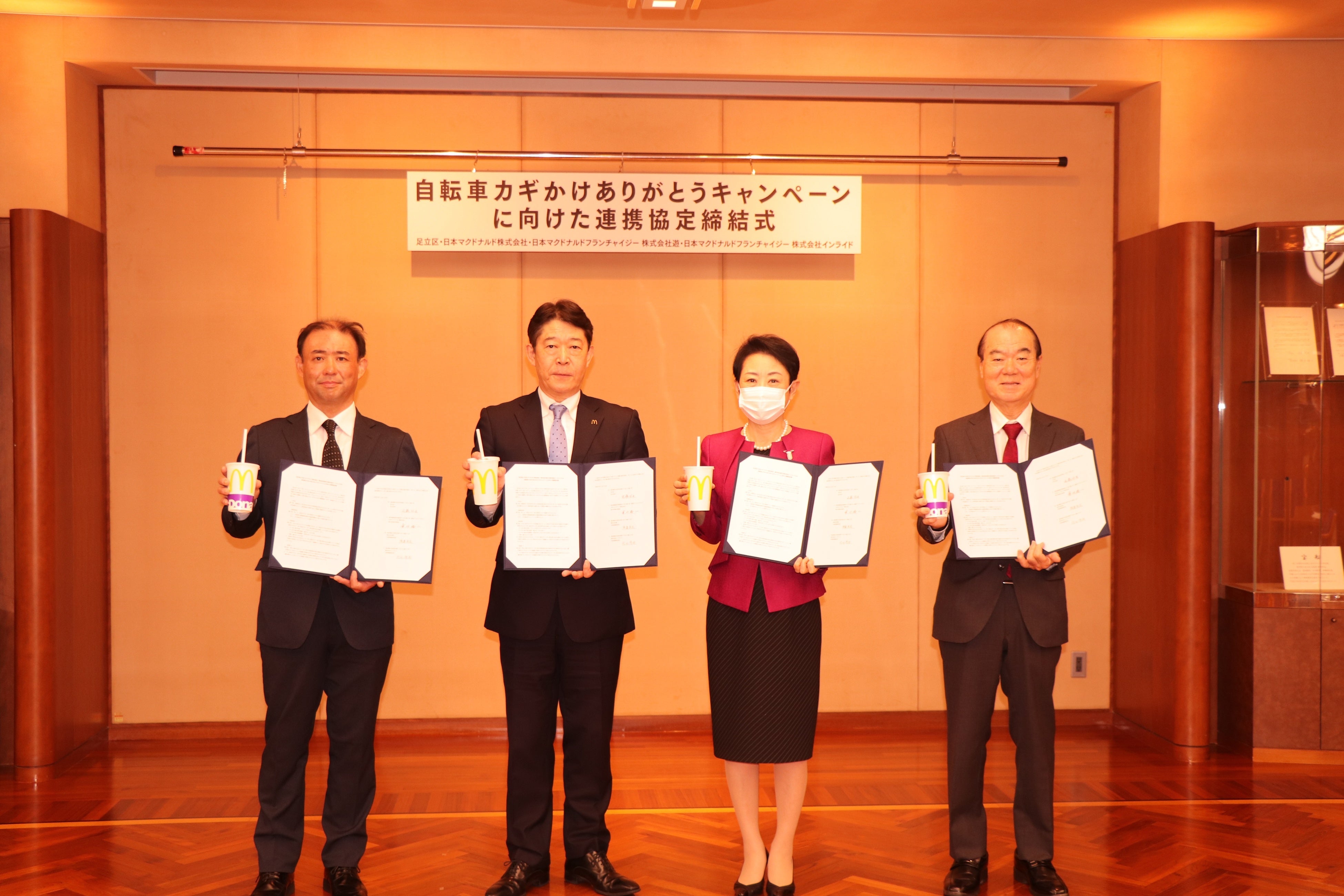 【東京都足立区】足立区と区内マクドナルドが初タッグ!「自転車カギかけありがとうキャンペーン」に向けた連携協定締結式が開催されました