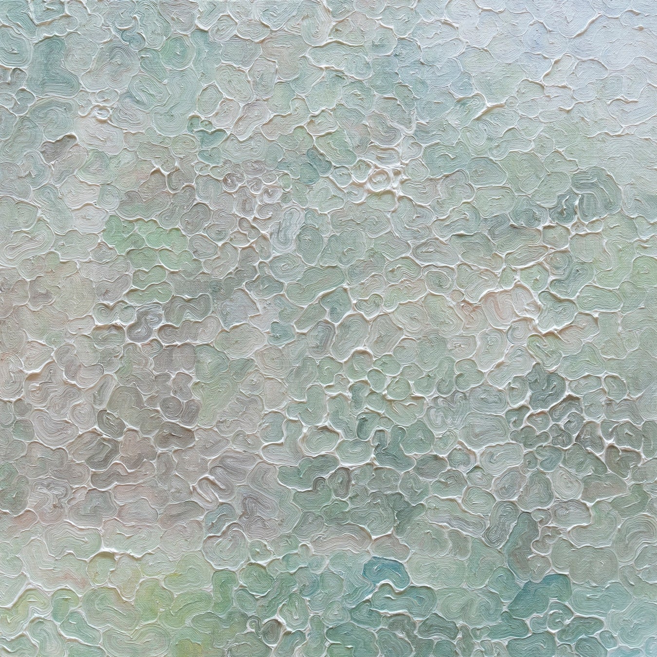 私たちが生きる世界を表現するために、渦の反復により多様な色や形を生み出す谷﨑の絵画。私たちはそれを現象として意識化し、意味や意図、価値を与えながら世界を理解しようとします。しかし、構成要素である渦自体には意味も意図もなく、ただ存在しているだけです。世界は本来、意味を持たず、ただそこにあります。色や価値を与えるのは、私たちの意識にほかなりません。自然風景についても同じことが言えます。
