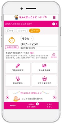 大阪府泉南市に採用された『せんくまっこナビ』は、スマートフォン・タブレット端末・PCに対応したサービスで、妊産婦と子どもの健康データの記録・管理や予防接種のスケジュール管理、出産・育児に関するアドバイスの提供、離れた地域に住む祖父母など家族との共有機能や、市が配信する地域の情報をお知らせするなど、育児や仕事に忙しい母親や父親を助けてくれる便利な機能が充実しています。