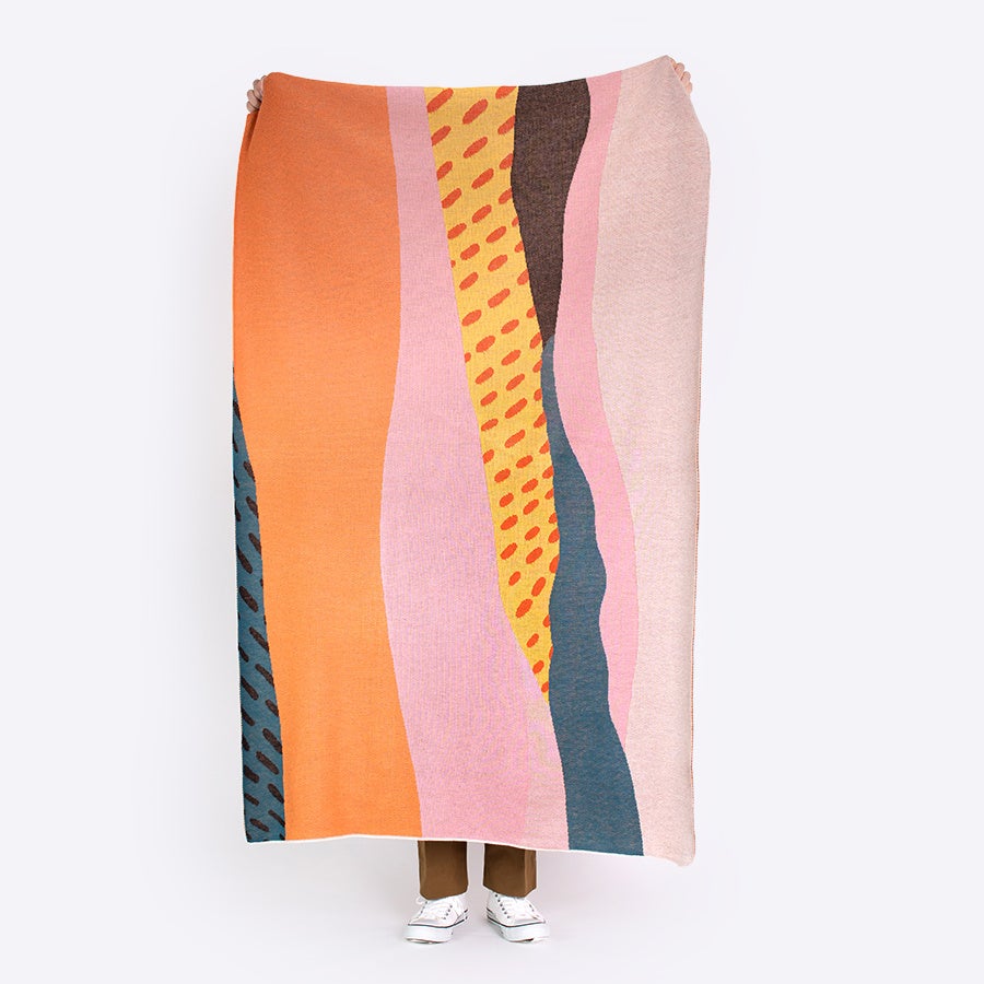 インテリアにもなる人気の大判サイズ(約150×100cm)ソフトで光沢感のあるアクリルウールの混紡糸を使用。肌触りのよさに加え、軽さも魅力です。また、水洗いが可能なためお手入れも簡単で、清潔で美しい状態を保てます。ジャカード編みにすることによってアート作品を美しく表現。日本国内生産しており、しっかりとしたこだわりのアイテムです。