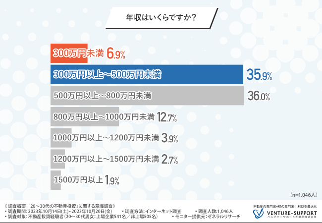 4割が年収500万円以下で、500万円未満の投資用不動産を購入している人が全体の3割に上った。