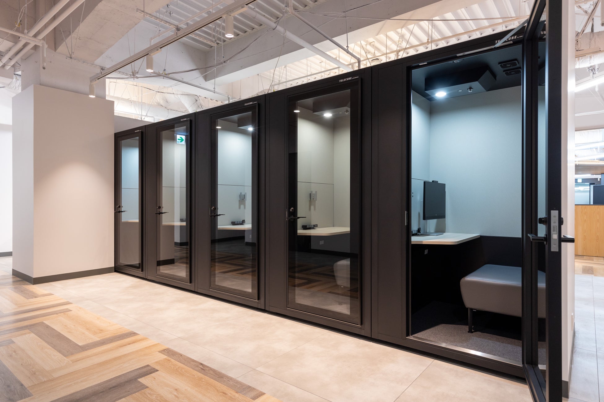 「Work x D」により、会議室など部屋の予約からドアの解錠までスマートフォンアプリ一つで完結する施設を実現します。利用者の利便性を高めるとともに、施設運営をサポートします。