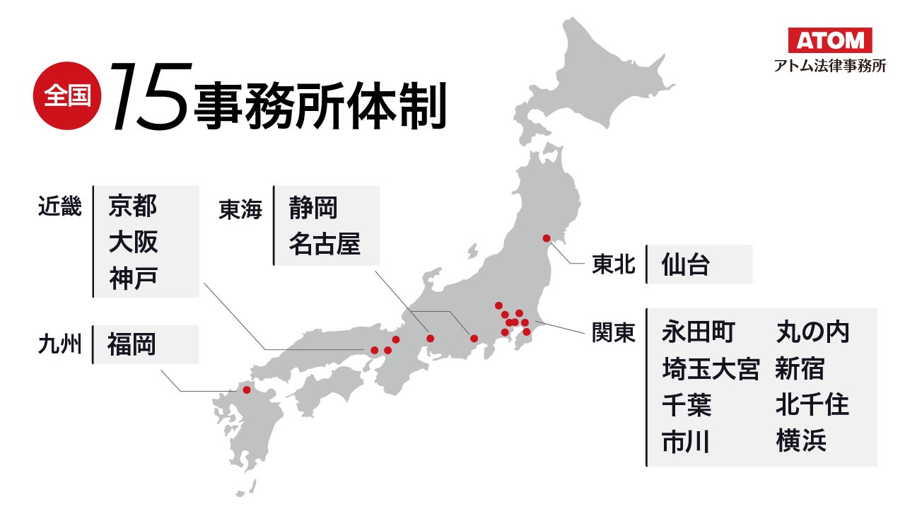 アトム法律事務所は全国主要都市に事務所を構える弁護士法人です。