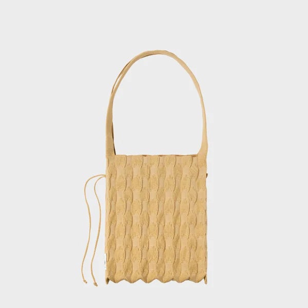 「JOSEPH AND STACEY」は持続可能な経営のために、原料から工程まで細心の注意を払っています。プラスチックボトルをリサイクルした環境にやさしい繊維で製作され、ニットバッグを使えば使うほど地球のプラスチックがなくなります。開発の際には素材の追求を徹底的に行い、様々なファブリックにて施策を重ね、現在の『ラッキープリーツニット』という素材が誕生いたしました。