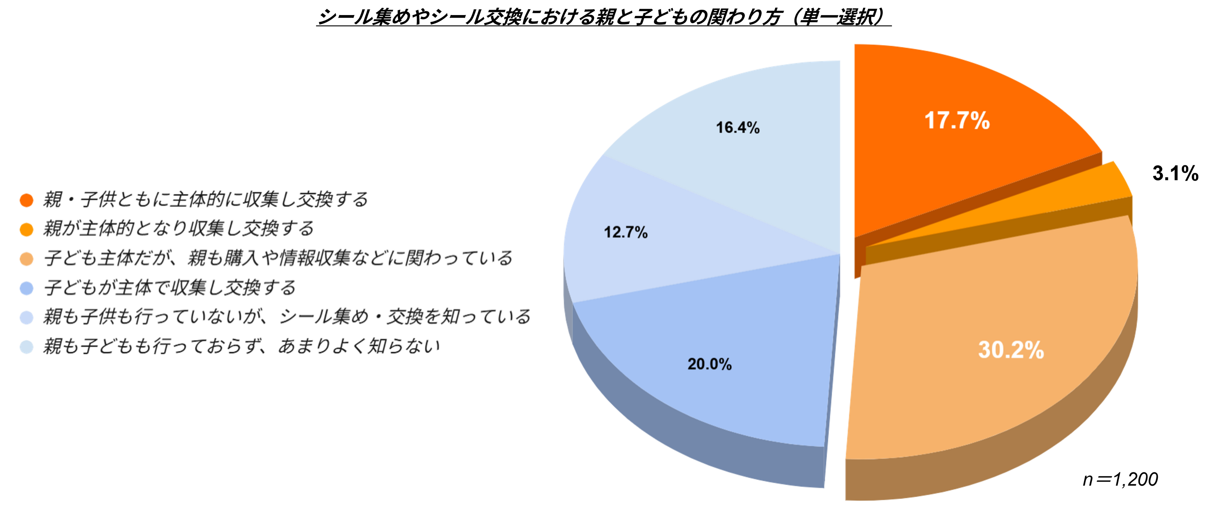 また、調査の結果、保護者の約51.0%が子どものシール収集に何らかの形で関与していることが分かりました。親が単なるサポート役に留まらず、自分の趣味として主体的に集めているケースも少なくありません。