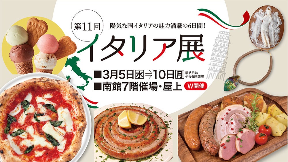 佐賀玉屋(本社:佐賀県佐賀市中の小路2−5、代表取締役社長 山越 悠登)は2025年3月5日(水)から3月10日(月)までの6日間、「第11回イタリア展」を南館7階催場および屋上にて開催いたします。