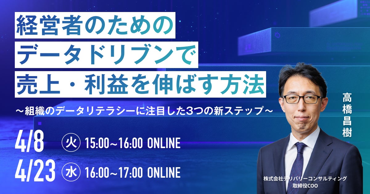 WEBセミナー開催決定!「経営者のためのデータドリブンで売上・利益を伸ばす方法〜組織のデータリテラシーに注目した3つの新ステップ〜」