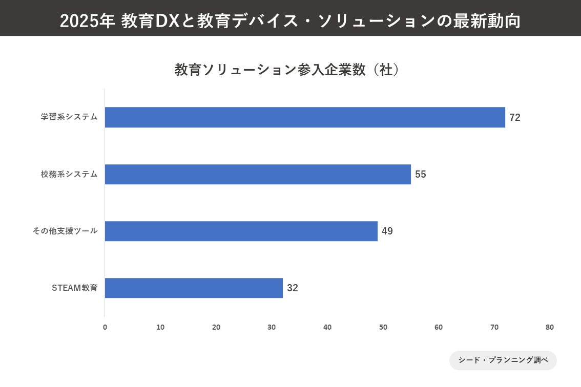 株式会社シード・プランニング(本社:東京都文京区 梅田佳夫社長、以下シード・プランニング)は、全国の小中高校の教育委員会、関係する教育DXデバイス、教育用インフラ、教育用ソリューションのメーカーを取材し、教育DXの参入動向を整理・その実態を調査し、その結果を発表したことをお知らせいたします。