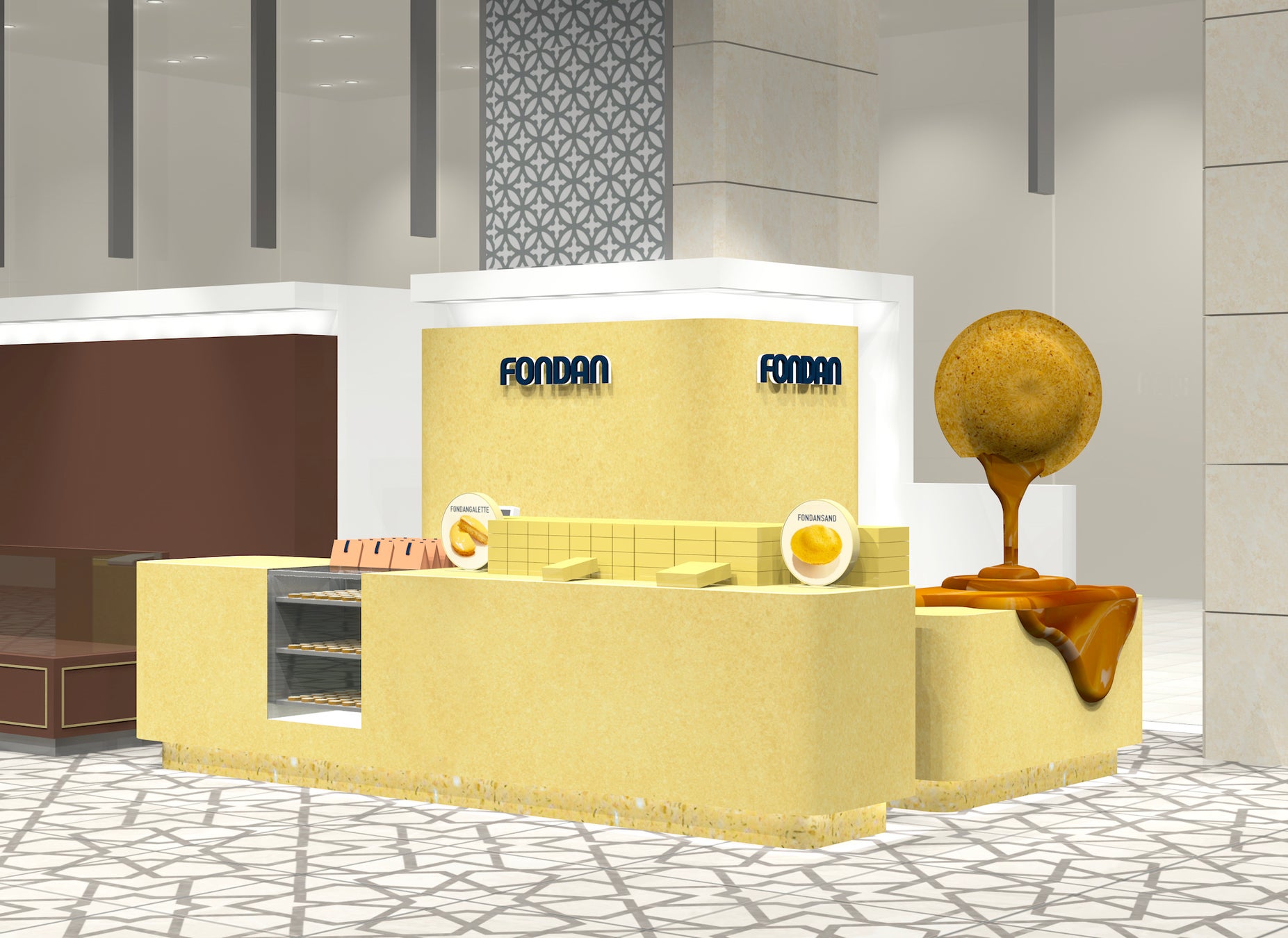 また、ミニマルな店内にひときわ目を引くフォンダンサンドのオブジェを配置。ブランドの楽しさとこだわりを伝える、印象的なアクセントになっています。