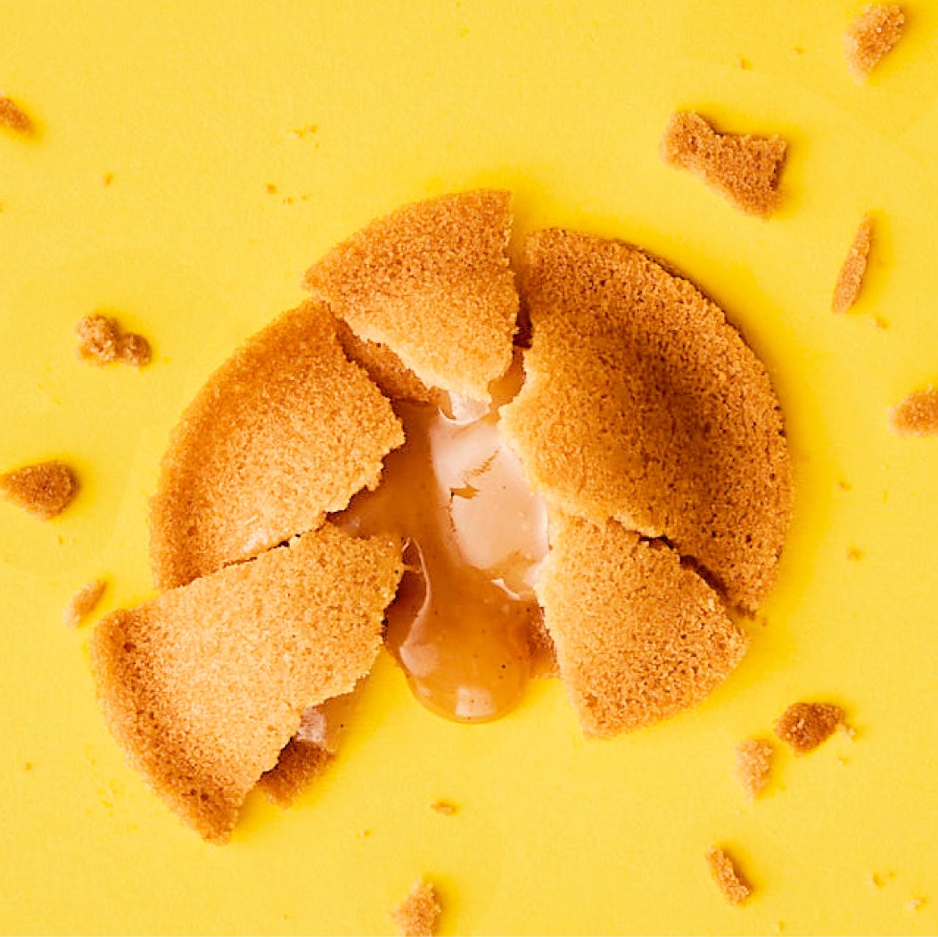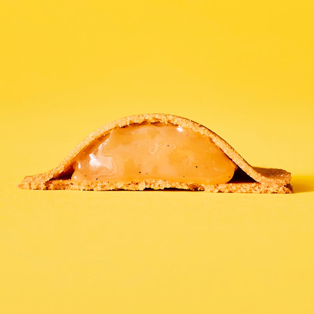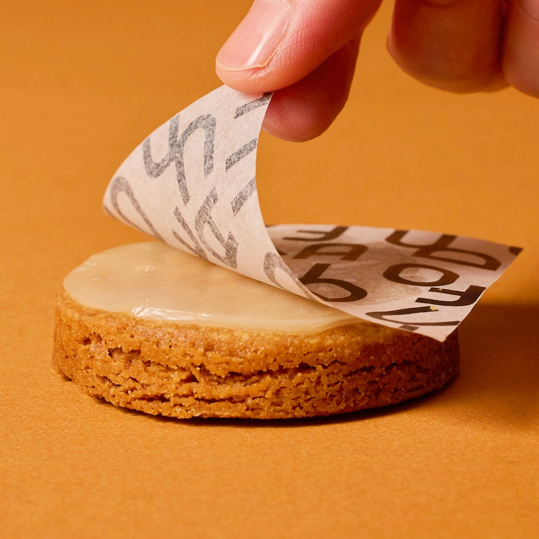 かりっとした食感の薄焼きラングドシャで、とろける口どけのキャラメルをサンドしました。キャラメルには自家製の生バターを仕上げに溶かし込むことで、深く心地よいコクの余韻が残る味わいに。ラングドシャのかりっとした食感、コク深くなめらかに口どけるキャラメルが調和した新食感のおいしさです。
