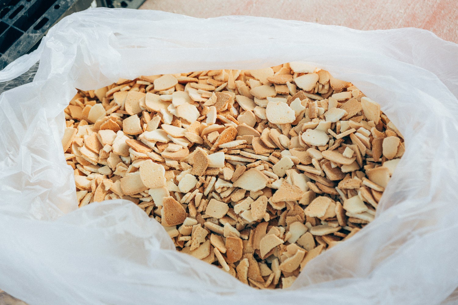 養鶏のおやつとして、グループのお菓子工場から出た商品にならないクッキーや、ケーキ作りなどで出たイチゴのヘタなどを与えています(食事の20%以内)。そうすることで、お菓子作りに適した風味豊かな卵を生み出しています。同時に、食品廃棄・ごみ削減にもつながる、環境にやさしい取り組みです。