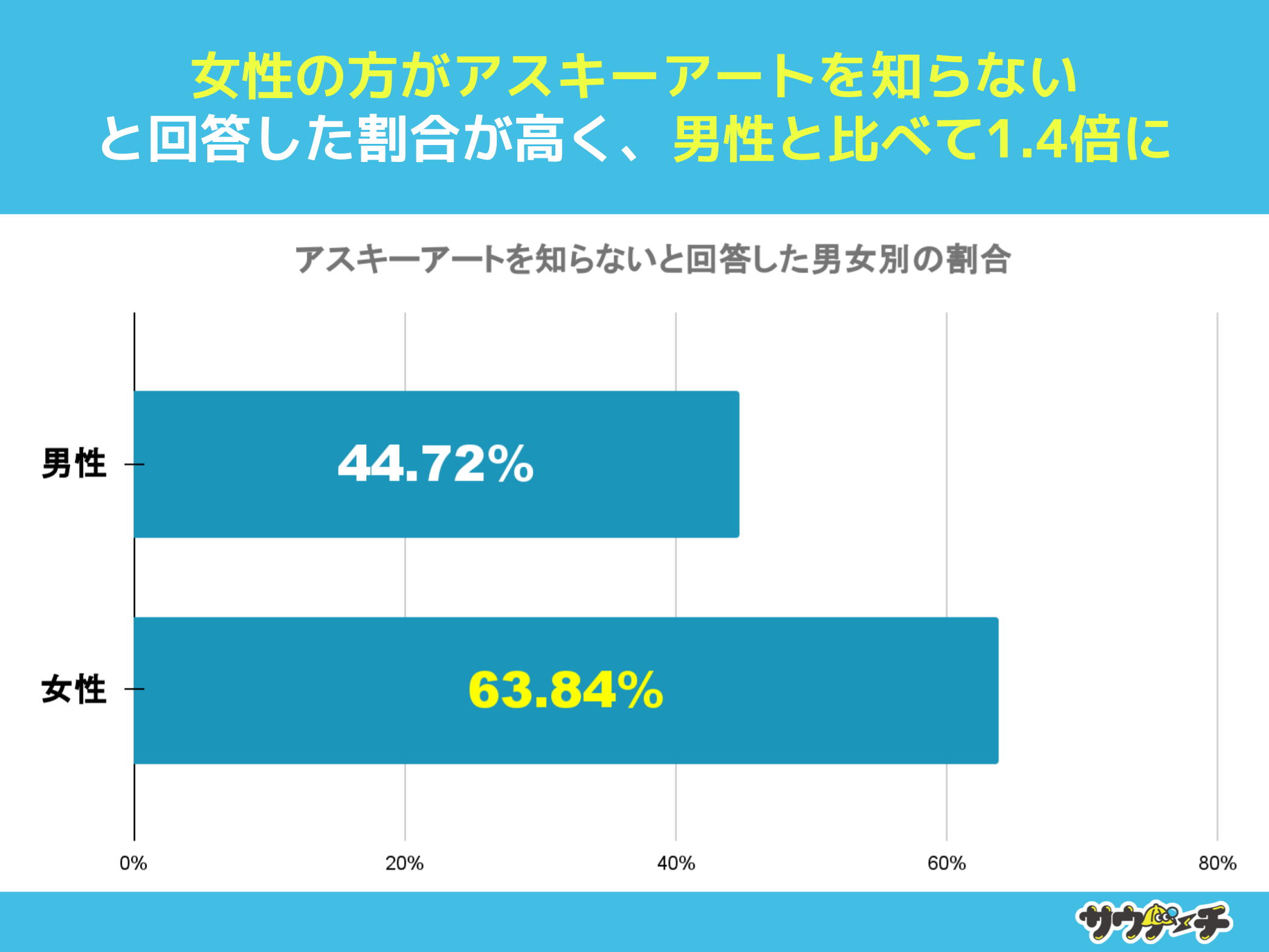 【女性の方がアスキーアートを知らないと回答した割合が高く、男性と比べて1.4倍に】