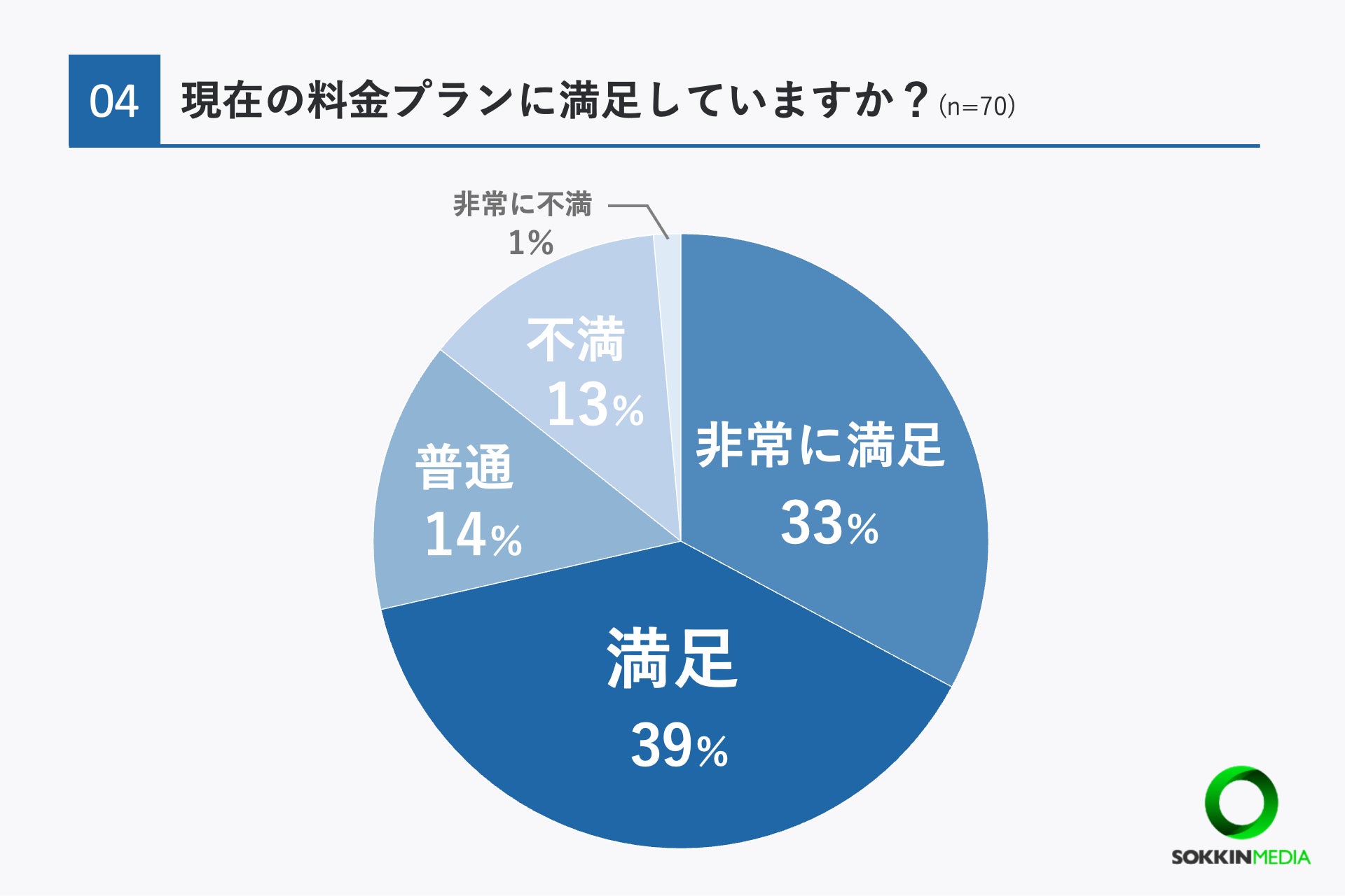 ・現在の料金プランに「非常に満足」または「満足」と回答した人が70%以上