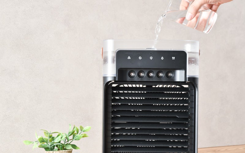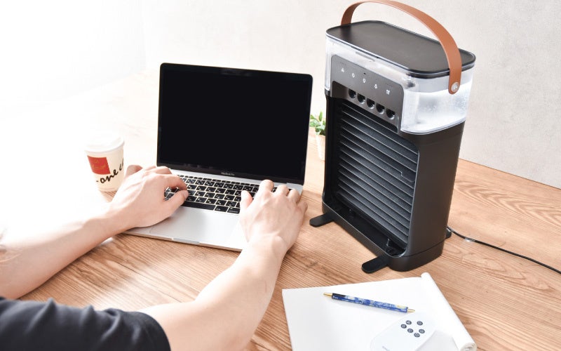 ■気化熱で涼しくなれる卓上に置けるコンパクト冷風扇
