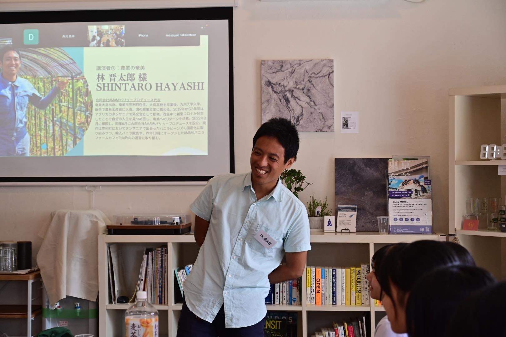 イベントでは、奄美の魅力を再認識するきっかけの一つとして、奄美に関連した活動をする大人たちによるトークセッションを実施。ZESDAが支援しているバニラファームカフェPole Poleの林さんのほか、ZESDA代表の桜庭が登壇しました。