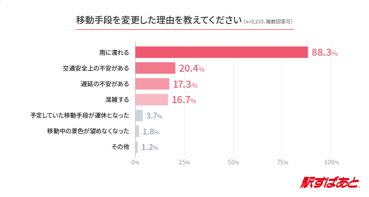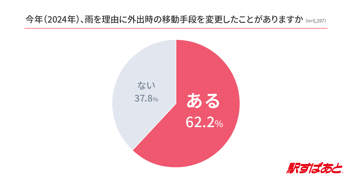 ・6割以上の人が雨を理由に外出時の移動手段を変更したことがあり、その理由の1位は『雨に濡れる』
