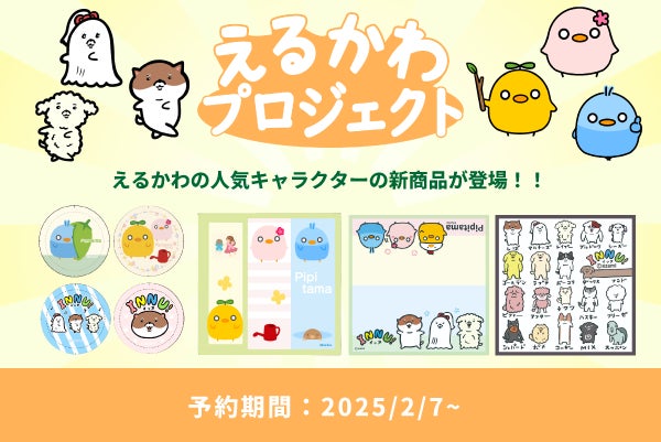 公式ブロガーが手掛けるオリジナルキャラクターとのコラボグッズを、ライブドアショッピング限定で販売します。本プロジェクトは、「ライブドアから世界に通用する“かわいいキャラクター”を発信したい」、「たくさんの人に元気や笑顔を届けられるキャラクターを生み出したい」という想いからスタートしたプロジェクトで、「ライブドア(livedoor)」の“L(える)”と「かわいいキャラクター」の“かわ”を組み合わせ、『えるかわプロジェクト』という名称が誕生しました。